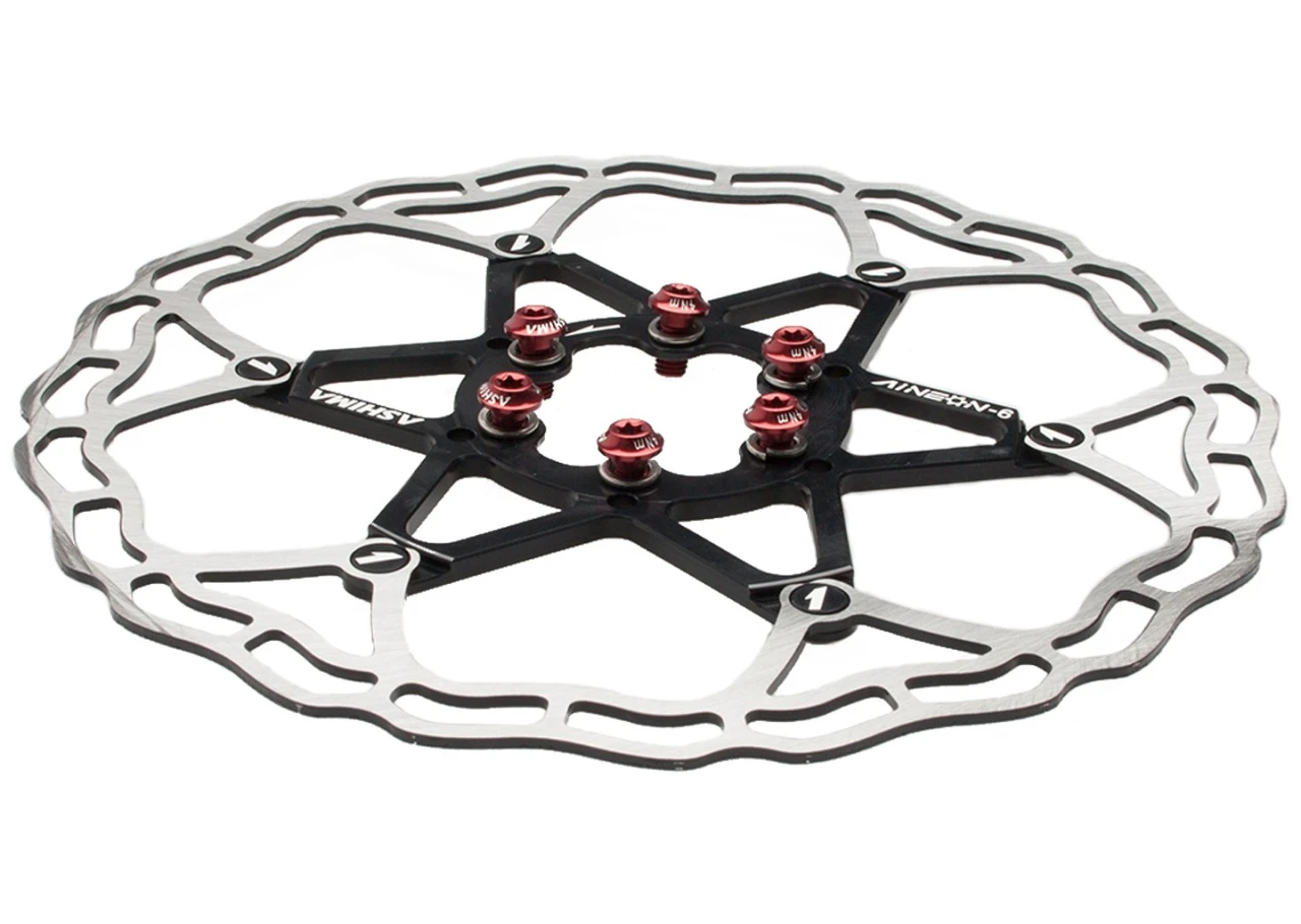 Ashima, Bremsscheibe, ARO-10 AiNeon, 180mm, 2-teilig, schwarz, Edelstahl, mit 6 roten Befestigungsschrauben, nur 85g